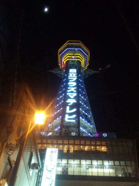 ネオンの点いた通天閣(朝の顔とは違います)