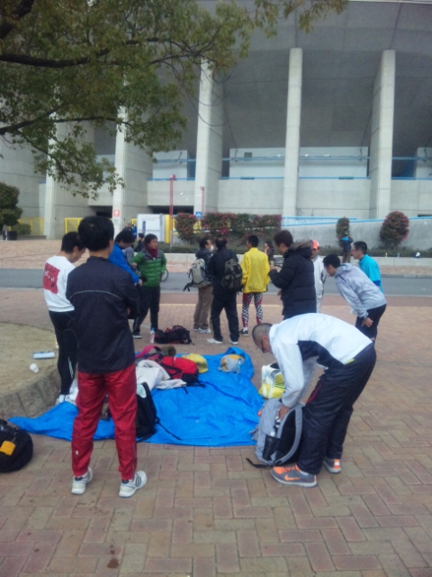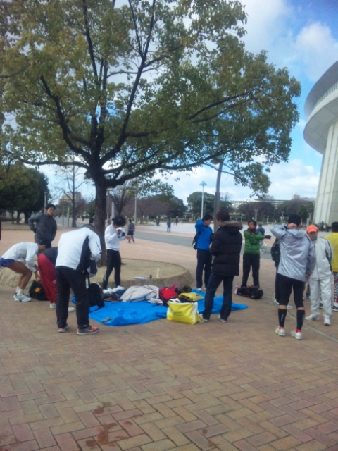 寒空の中で着替える姿は紙一重(自分は水道で頭を洗いましたが)