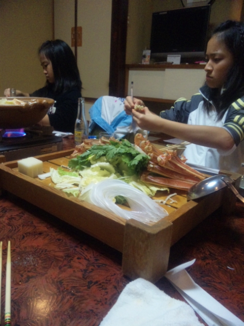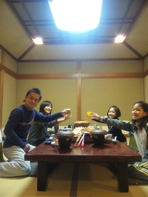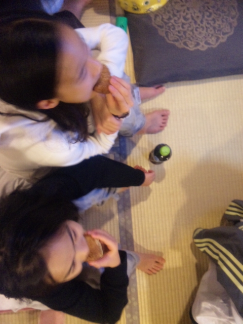 焼おにぎりを食す娘達…