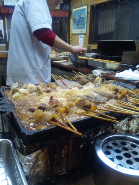 定番の串かつに名物のどて焼き(ビールが進む)