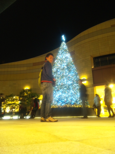 なんばパークスのクリスマスツリーの前で自分撮り(カシャっ)