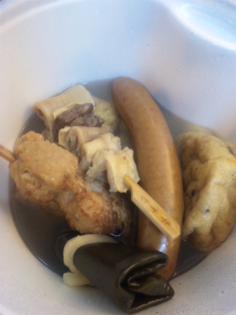 夕食:おでん、サラダ、ひじき、巻き寿司
