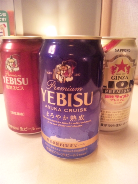 青い缶のエビス飛鳥Ⅱ船内限定ビールから(-_-)/