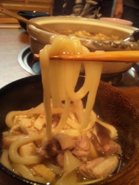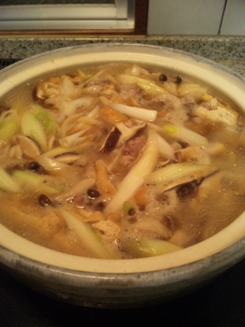 夕食:鴨鍋うどん、焼豚、寿司(残り物)