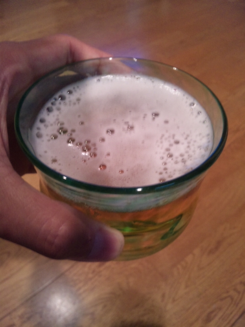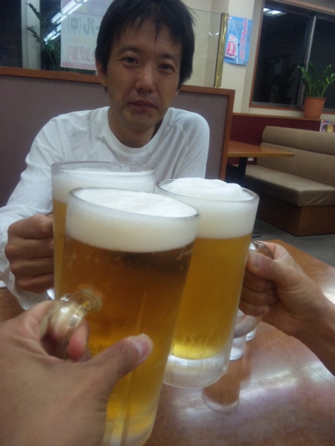 打ち上げでビールを味わう(ほっ)