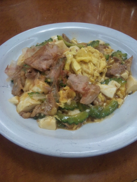 朝食:ご飯、イワシの煮付け、鶏のレバー煮、きゅうりとタコの酢の物、ラブレ